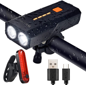 Wastou Bike Lights Super Bright Bike Front Light 1200 Lumen IPX6 Waterproof 6 Modes Cycling Light Flashlight Torch USB Rechargeable Tail Light(USB Cables Included)